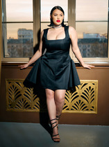 Сарафан молодежный из тканого штапельного полотна с набивным цветочным рисунком, удлиненное, без рукавов, отрезное выше линии талии. Расширенная юбка присборена с помощью эластичной шляпной тесьмы, продетой через петли в кулиску и регулируемой металлическими фиксаторами в боковых швах. Горловина V-ной формы обработана обтачкой.