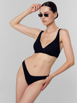 Раздельный купальник состоит из бюстгальтера и плавок. Бюстгальтер с мягкой чашкой  без каркасов, с боковыми корсетными вставками и съемными чашками, на подкладе. Бретель завязывается на шее и  отстегивается. По центру бюстгальтера декоративная пряжка из металла, собирающая ткань на сборку и создающая объем. На спинке пластиковая застежка. Плавки - бразильяны на подкладе, с высокой посадкой и высоким вырезом ножек. Спереди слева декоративная пряжка из металла.