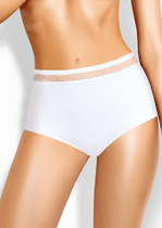 Трусики формы Brief со средей посадкой выполнены из нежного полотна в рубчик. Нежное кружево по срезу ножек и резинка, с вывязанной полоской контрастного цвета, по верхнему краю изделия украшают его. Ластовица из хлопка