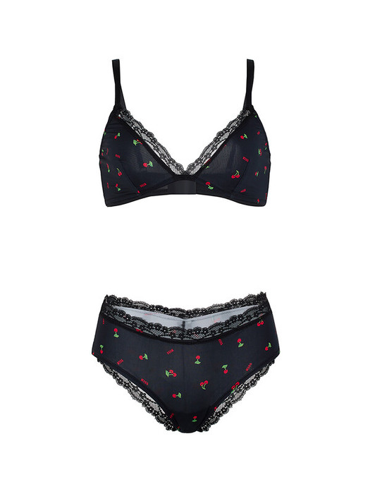 Трусики Hipster со средней посадкой выполнены из мягкой ткани с принтом  "Вишенка" с кружевной лентой по талии и краю тожек. Подгиб и плоский шов спереди. Ластовица из хлопка.