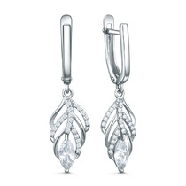 Серьги с фианитом родированные серебро 925*