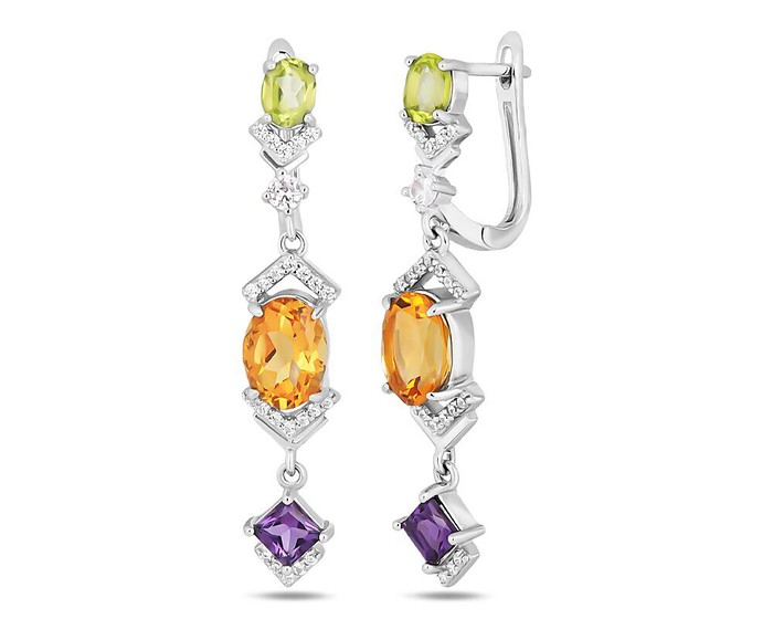 Серьги, арт.657565 Серебро Серебро 925, 5,29 гр., аметист , перидот , цитрин