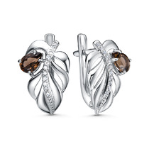 Серьги из серебра с дымчатым кварцем и фианитами родированные 2-4148-001
