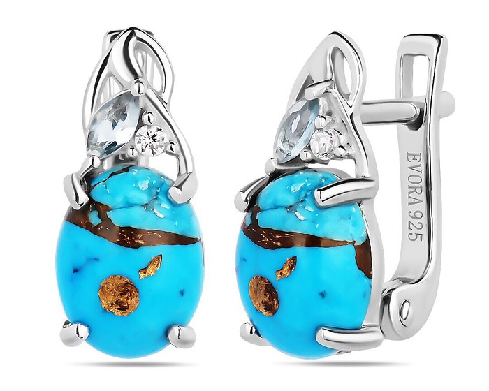 Серьги, арт.658675 Серебро Серебро 925, 3,35 гр., бирюза пресс. , лондон топаз кварц