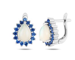 Серьги, опал нат. белый , наносапфир, NKD-2321