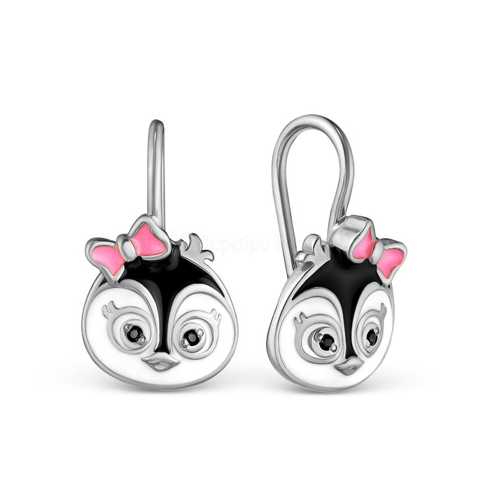 Серьги детские из серебра с эмалью и фианитами родированные - Пингвины
