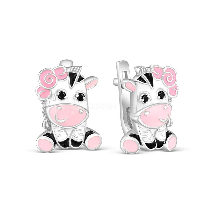 Совместные покупки Челябинск Детские аксессуары Украшения, бижутерия — Серьги детские из серебра с эмалью и фианитами родированные - Зеброчки