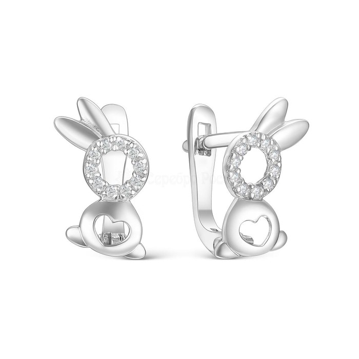 Совместные покупки Челябинск Детские аксессуары Украшения, бижутерия — Серьги детские из серебра с фианитами родированные - Зайчики С-4570-Р
