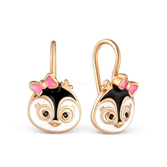 Серьги детские из золочёного серебра с эмалью и фианитами - Пингвины