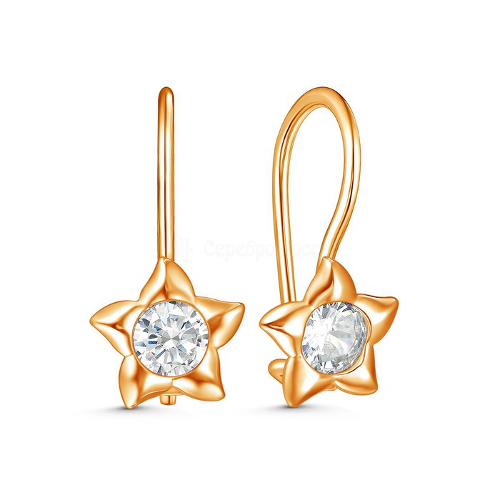 Серьги детские из золочёного серебра с фианитами - Звёзды S2180491010з