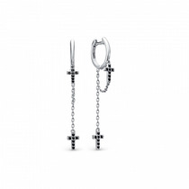 Серьги длинные форма клевер из серебра родированные коллекция quatrefoil