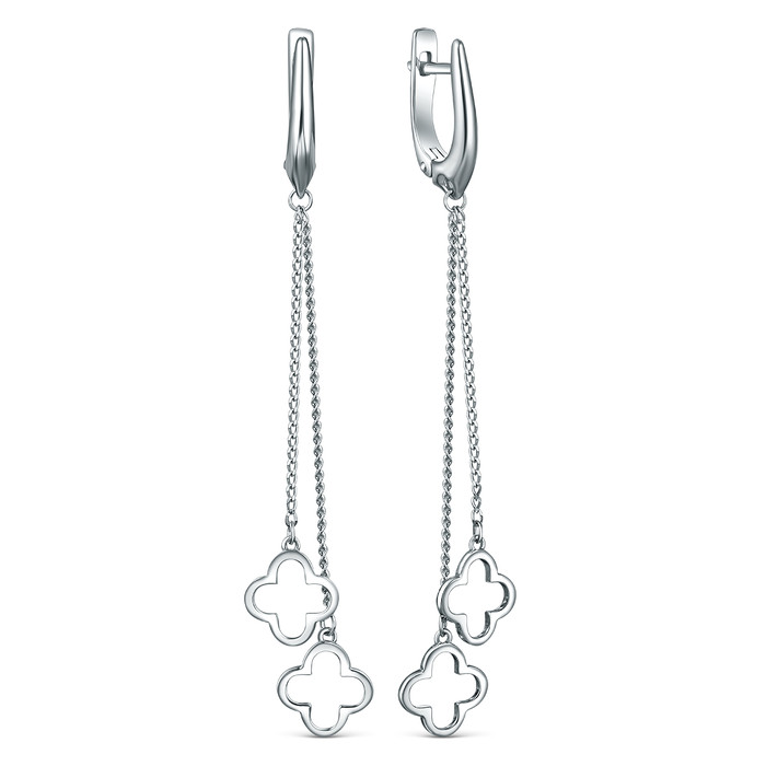 Серьги длинные из родированного серебра - Клеверы 21049р