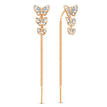 Серьги-продёвки длинные из золочёного серебра с фианитами и родированием - Бабоч
