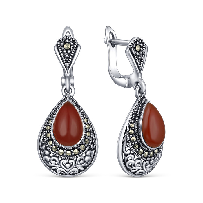 Совместные покупки Челябинск Ювелирные украшения и бижутерия Серьги — Серьги из чернёного серебра с агатом и марказитами HE1703-RD-LK