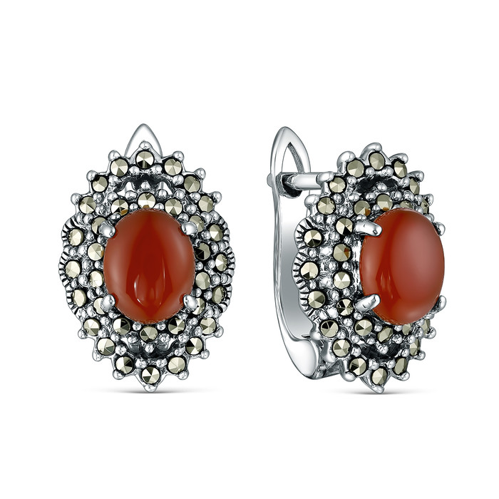 Совместные покупки Челябинск Ювелирные украшения и бижутерия Серьги — Серьги из чернёного серебра с натуральным агатом и марказитами 925 пробы HE0358-
