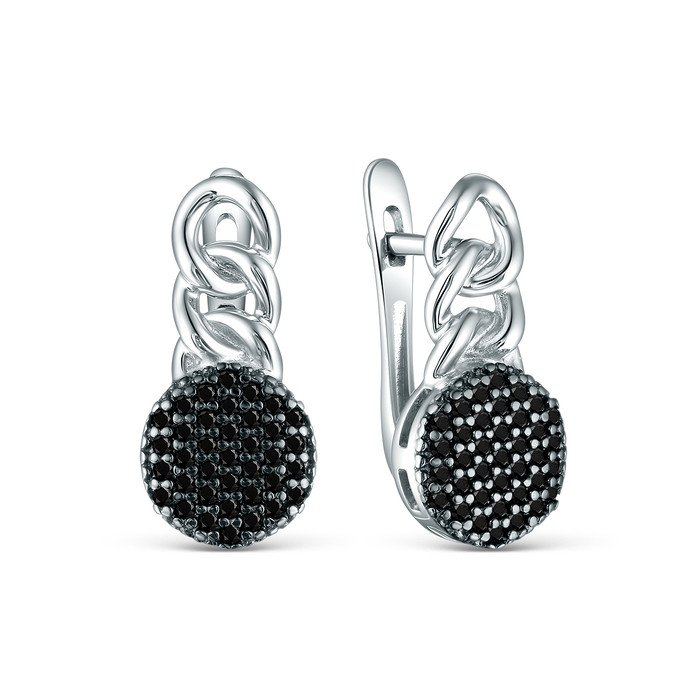 Серьги из серебра с чёрной шпинелью родированные 925 пробы С150107рч416