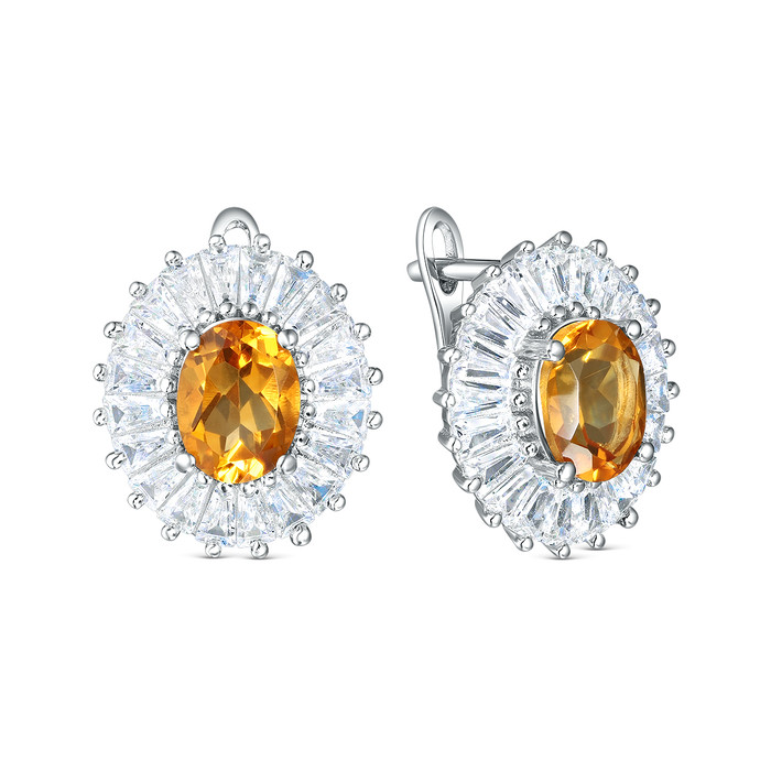 Серьги из серебра с цитрином и кубическим цирконием родированные 925 пробы GTP-1