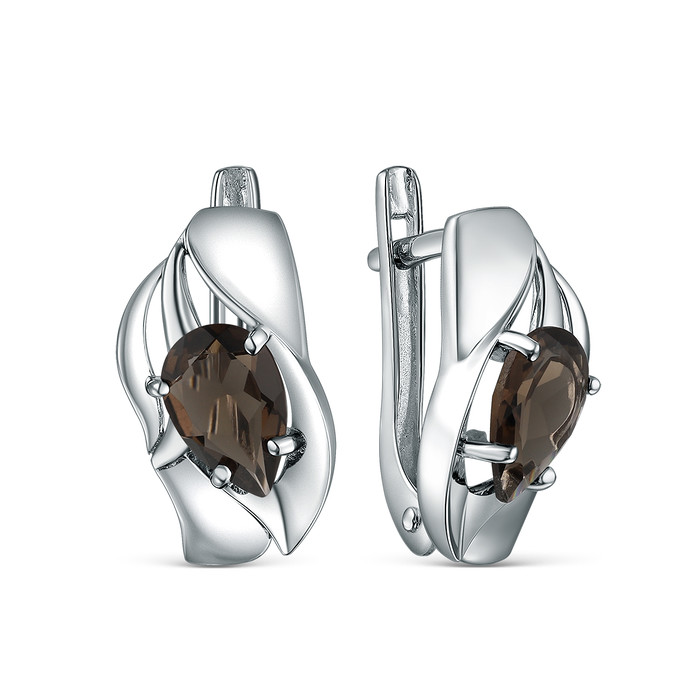 Совместные покупки Челябинск Ювелирные украшения и бижутерия Серьги — Серьги из серебра с дымчатым кварцем родированные 1-5454-001