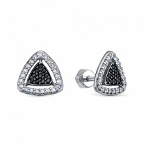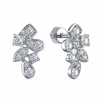 Серьги из серебра с фианитами родированные