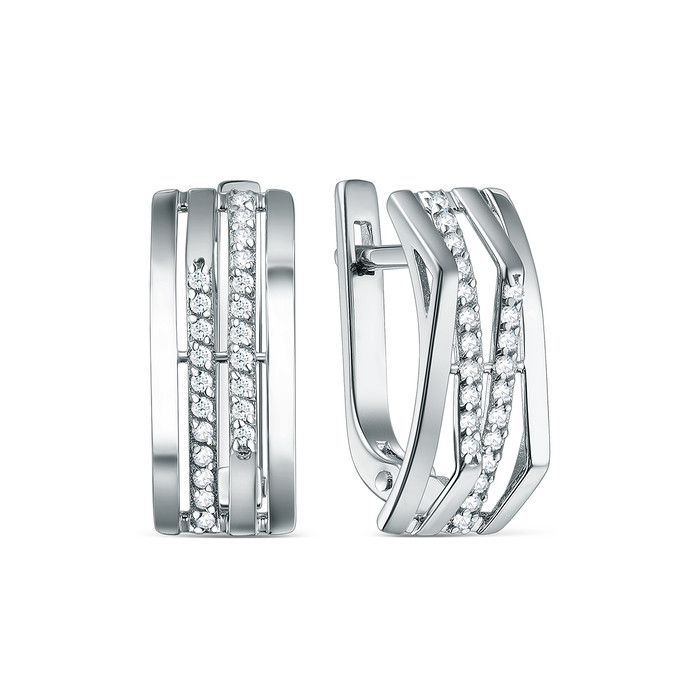 Серьги из серебра с фианитами родированные с-4800-р
