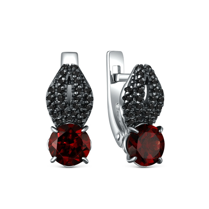 Совместные покупки Челябинск Ювелирные украшения и бижутерия Серьги — Серьги из серебра с гранатом и чёрной шпинелью родированные 925 пробы 2-534рч404