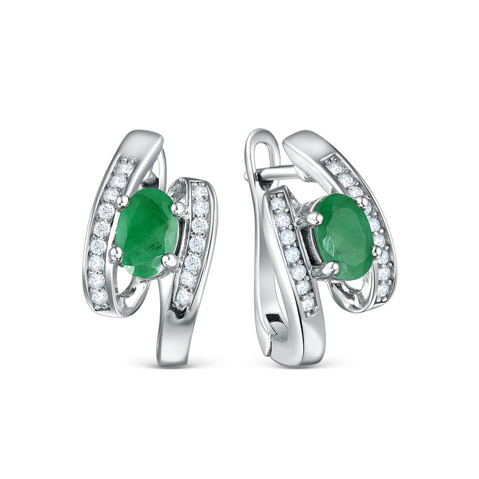 Совместные покупки Челябинск Ювелирные украшения и бижутерия Серьги — Серьги из серебра с изумрудом и кубическим цирконием 925 пробы GTE-12566F-E