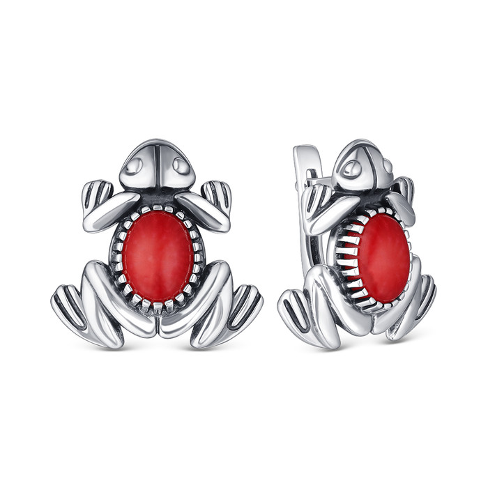 Совместные покупки Челябинск Ювелирные украшения и бижутерия Серьги — Серьги из серебра с кораллом родированное - лягушки 925 пробы С-4071ок454