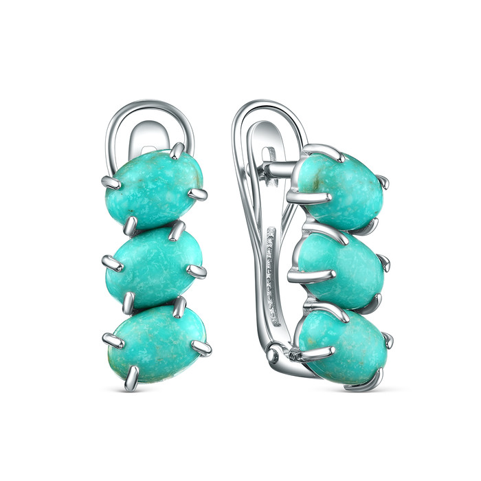 Серьги из серебра с натуральной бирюзой родированные 925 пробы 04-202-0408-30