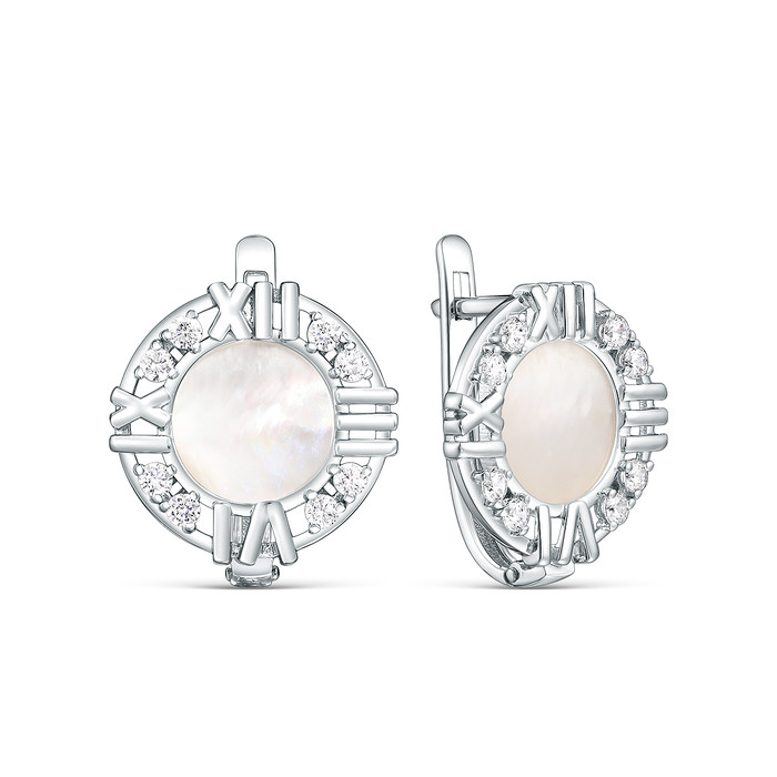 Совместные покупки Челябинск Ювелирные украшения и бижутерия Серьги — Серьги из серебра с перламутром и фианитами родированные 925 пробы с-4531-р