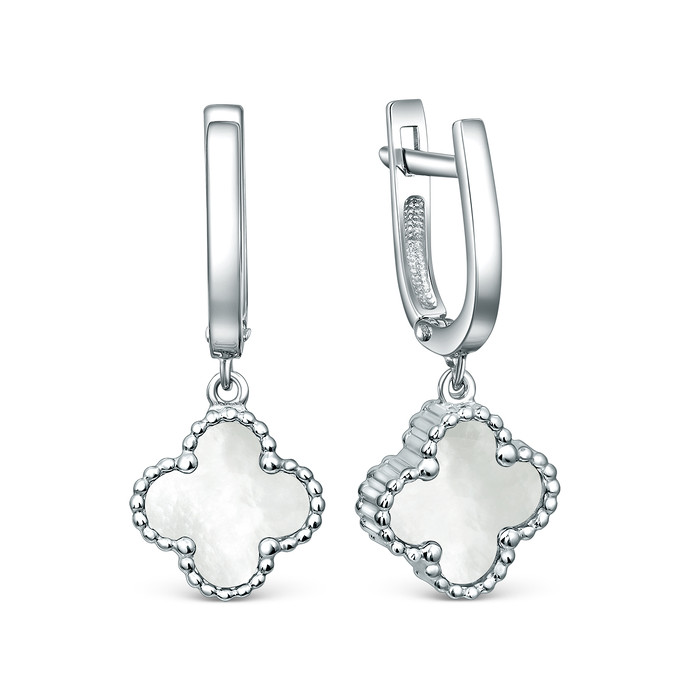 Совместные покупки Челябинск Ювелирные украшения и бижутерия Серьги — Серьги из серебра с перламутром родированные - Клевер, четырёхлистник 925 пробы