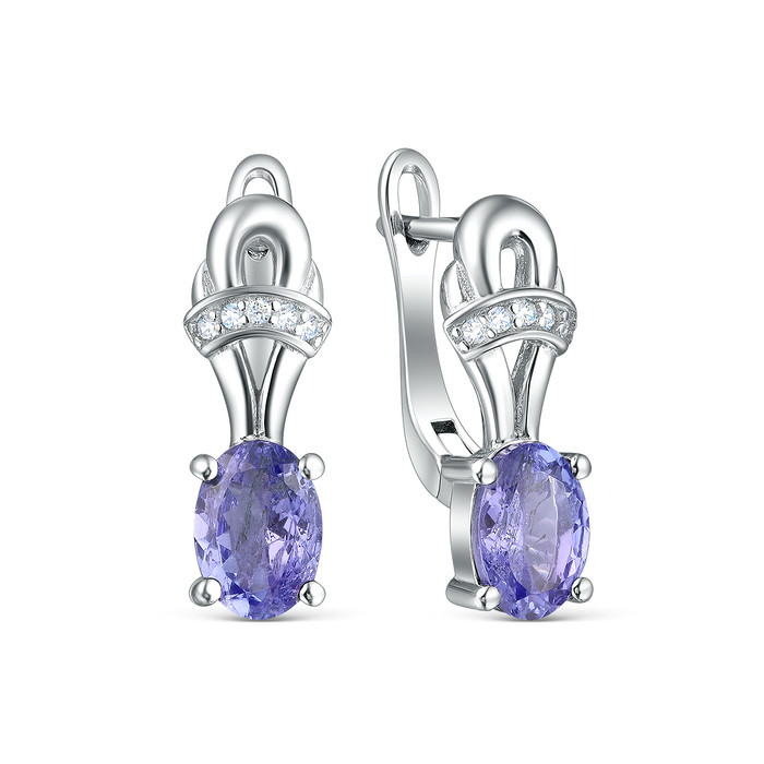 Совместные покупки Челябинск Ювелирные украшения и бижутерия Серьги — Серьги из серебра с танзанитом и кубическим цирконием родированные 925 пробы GTE