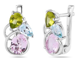 Серьги, морганит , перидот , топаз, Марте