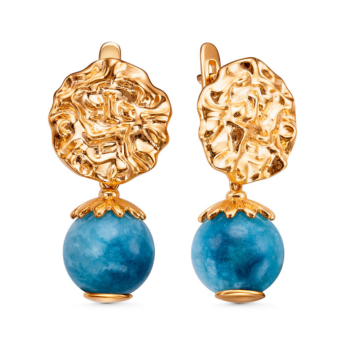 Серьги из золочёного серебра с кварцем цвета голубой аквамарин 925 пробы С50109з
