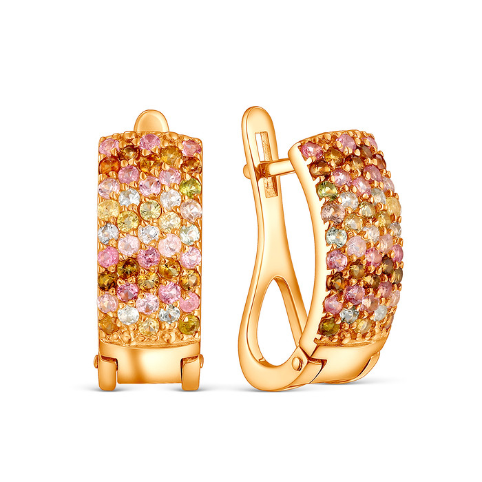 Совместные покупки Челябинск Ювелирные украшения и бижутерия Серьги — Серьги из золочёного серебра с турмалином мульти 925 пробы 2-473з428