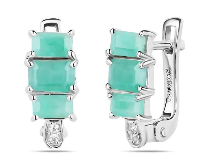 Серьги, арт.658688 Серебро Серебро 925, 3,15 гр., изумруд берилл