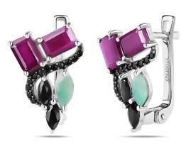 — Серьги, изумруд берилл , рубин корунд , сапфир корунд , шпинель, Бернарда