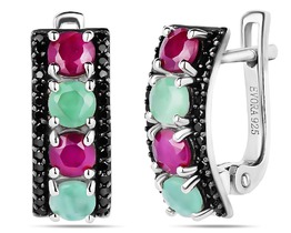 Серьги, арт.658698 Серебро Серебро 925, 4,58 гр., изумруд берилл , рубин корунд , шпинель