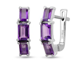 Серьги из серебра с чёрным агатом родированные 925 пробы С-4536-Р-Ча