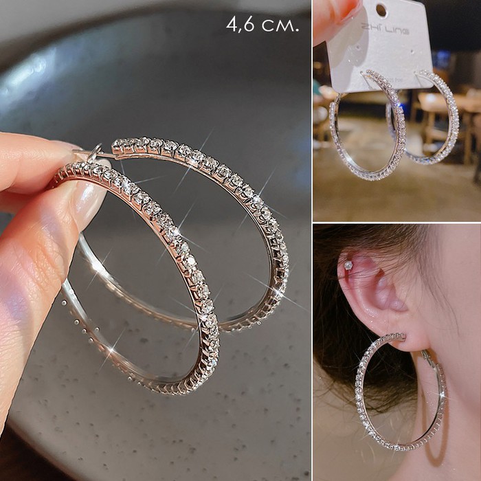 Эти серьги кольца из серебристого металла добавят блеска к вашему образу. Они идеально подходят для любого повода и приятно выделяются на фоне остальных аксессуаров. Сияющие кристаллы акцентируют внимание.Прекрасно сочетаются с любым стилем одежды. Классический вариант отлично подойдёт для вечернего выхода или светского события. Замок булавка обеспечивает надежность и лёгкость в использовании.