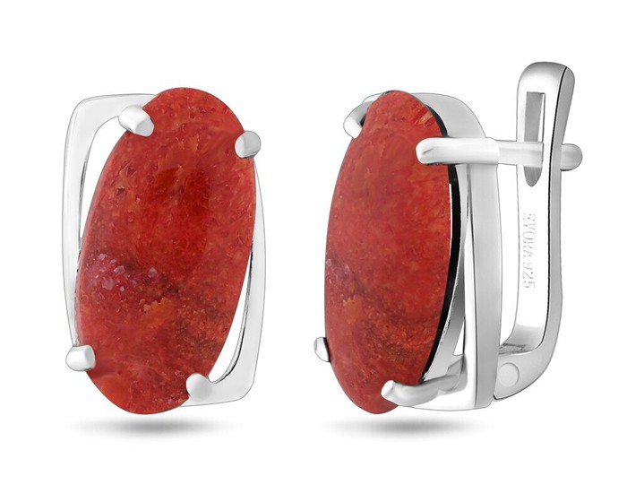 Серьги, арт.656170 Серебро Серебро 925, 4,86 гр., коралл губчатый