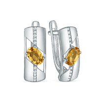 Серьги из серебра с цитрином и фианитами родированные 2-3906-001