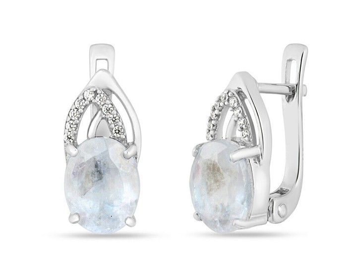 Серьги, арт.656136 Серебро Серебро 925, 3,85 гр., лунный камень