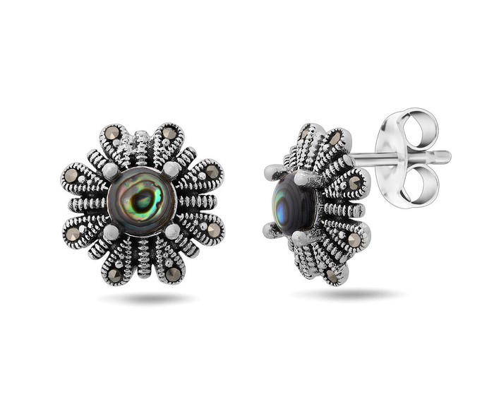 Серьги, арт.656503 Серебро Серебро 925, 2,32 гр., марказит , перламутр зелёный