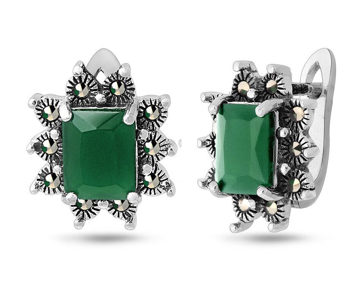 Серьги, марказит , синт.изумруд, SL-AGA1631