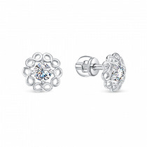 Серьги-продёвки из серебра с пл.кварцем цв.swiss топаз и фианитами родированные
