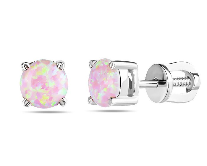 Серьги, арт.658301 Серебро Серебро 925, 1,84 гр., опал розовый выр.