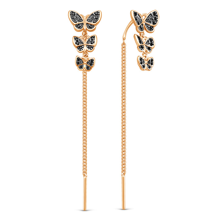 Серьги-продёвки длинные из золочёного серебра с натуральной шпинелью и родирован