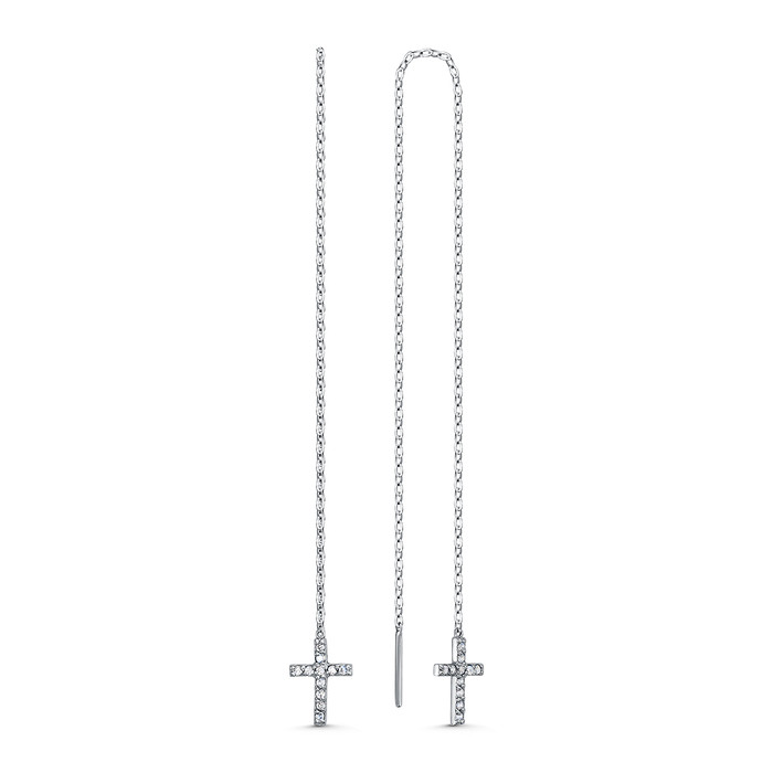 Серьги-продёвки из серебра с фианитами родированные - Кресты (длина всей цепи 19