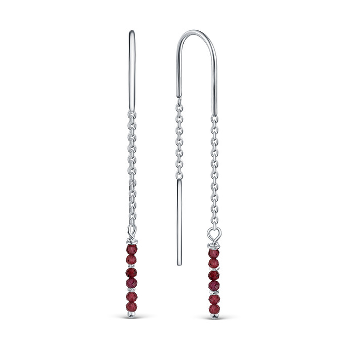 Серьги-продёвки из серебра с натуральным гранатом родированные 925 пробы 15864GR