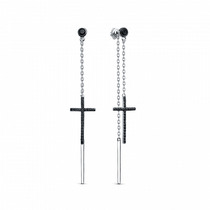 Серьги-продёвки из золочёного серебра с пл.кварцем цв.зелёный, чёрный, родирован